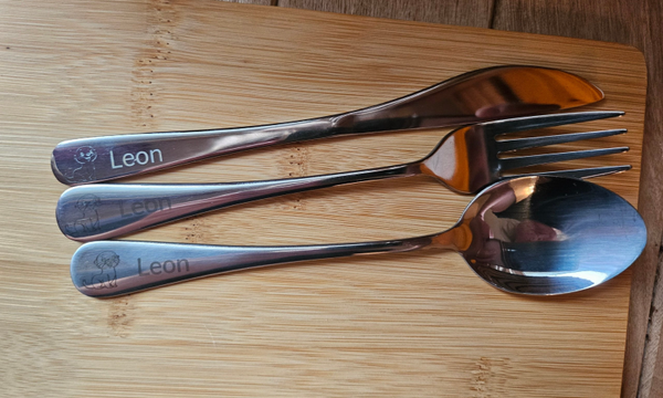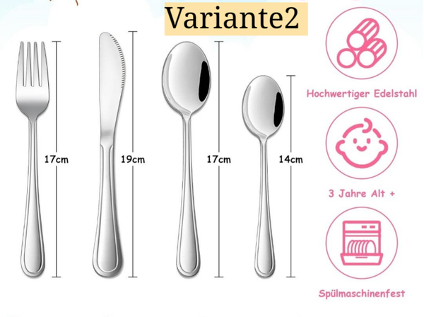 - Set-Inhalt: 1x Löffel, 1x Gabel, 1x Kindermesser